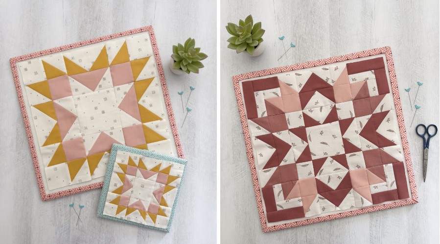 Serenity block by Sue Daley and the Perseverance block by Lori Holt. We love them, absoutley beutiful! Sue’s block includes a printable template to use for the English Paper Piecing technique that makes this lovely Dresden.